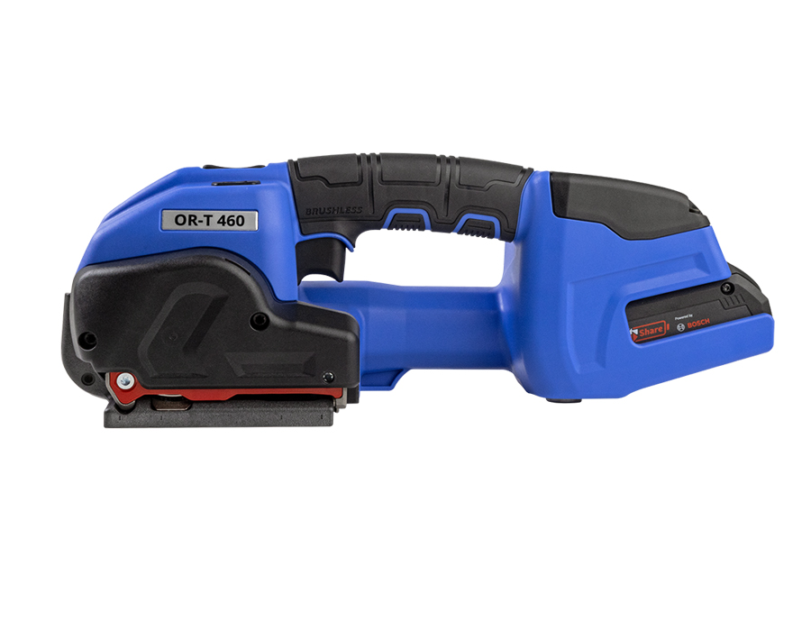 瑞士进口OR-T460手提式电动打包机 塑钢带打包机、充电式打包机 适用带宽15-16mm、18-19mm,带厚0.5mm-1.2mm 机身重量:4.3KG 采用摩擦热熔的连接方式,可打PP和PET